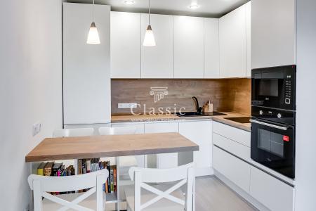 Когда кухонный гарнитур полностью готов, мебель отправляются по указанному адресу. Вы можете выбрать удобное время доставки. Мастера выполнят монтаж шкафов, подключат бытовую технику, уберут строительный мусор.